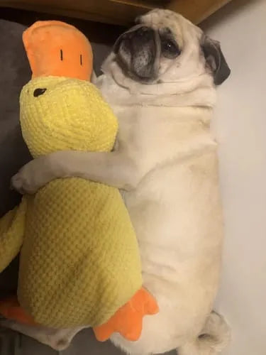 "Parfait contre l’anxiété et l’ennui. Quand je pars travailler, mon chien reste tranquille avec son canard. Il s’occupe, se rassure et je le retrouve beaucoup plus calme à mon retour."